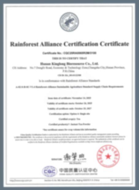 | Tiêu chuẩn: | Rainforest Alliance Certification Certificate |